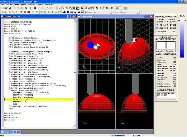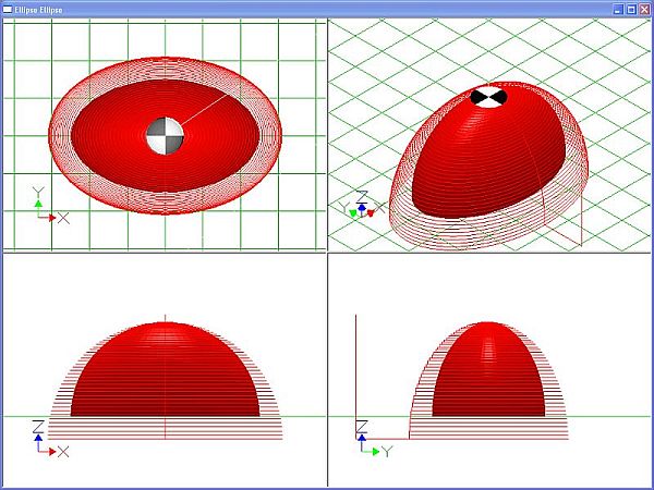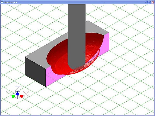 Ellipsoid negativ Schnittansicht mit Werkzeugbahnen