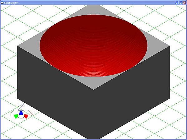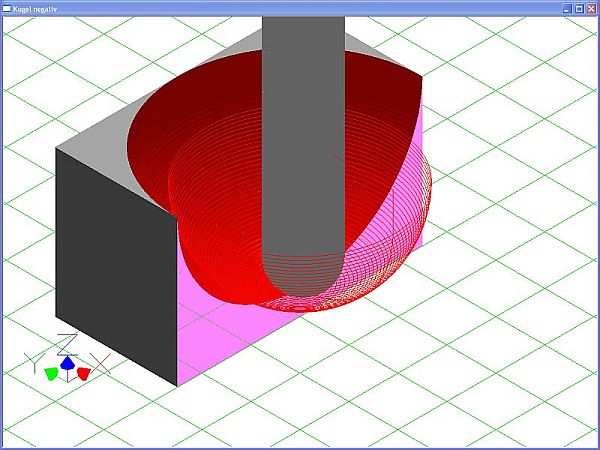 Kugel negativ Schnittansicht mit Werkzeugbahnen